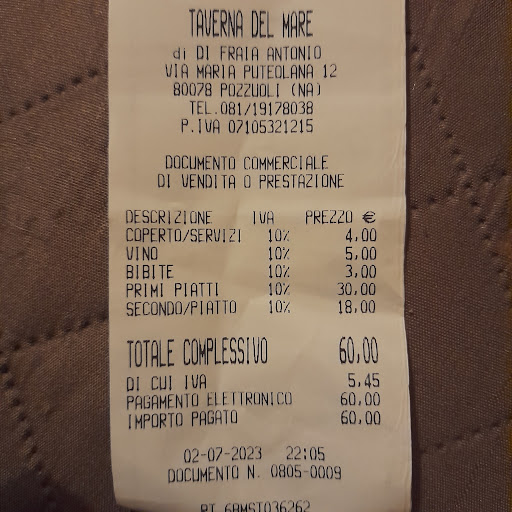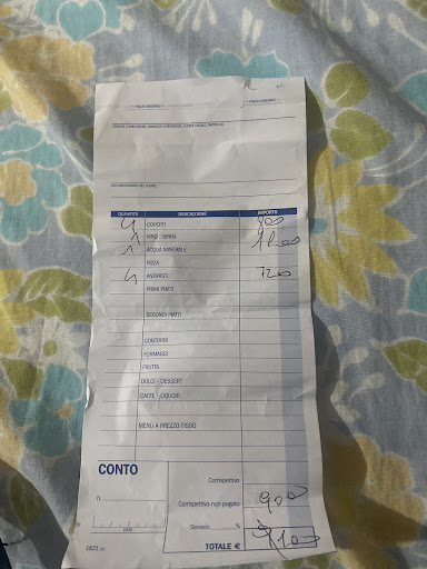 Read moreEsperienza del tutto negativa. Alla richiesta del menù ci è stato negato così spinti da loro abbiamo ordinato 2 spaghetti alle vongole portate dopo 5 minuti con pasta precotta e senza nessun sapore poi abbiamo preso una sola frittura di calamari surgelati ma visto che non danno nessuna indicazione scritta lo hanno detto a voce mentre per legge dovrebbe essere messa per iscritto un vino locale di scarsa qualità e nel frattempo abbiamo chiesto il conto che dopo tanta insistenza ci è stato detto con fare arrogante da una presunta cameriera che lei non stava pettinando le bambole così con modo arrogante ci ha detto che già eleva preparato lo scontrino quasi fosse una cosa poco comune nel farli e visto che alle ore 22.05con la sala piena avendo lavorato dalla mattina il numero progressivo del documento fiscale è 9 quindi informerò anche chi è predisposto a controllare le emissioni fiscali di questo ristorante così rispetteranno le normative fiscali .Nel menù devono essere assolutamente presenti indicazioni riguardanti gli allergeni e la presenza di alimenti che possono generare intolleranze e devono inoltre essere date informazioni sull’uso di prodotti congelati. Nel caso io abbia delle problematiche di carattere sanitario riterrò loro responsabili. Egregia signora è stata brava a dire quando c'è vo ... ora è toccato a me. A presto risentirci e mai più vederci tutto pre defraudarci di 60.00 € per 2 primi ed 1...