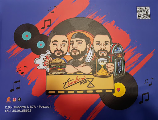 Read moreIl Pub Timeless sul lungomare Yalta di Pozzuoli rappresenta un'eccellenza nel campo della ristorazione locale tra servizi di Pub-Paninoteca. Le materie prime adoperate sono di assoluta e primissima scelta dove i conduttori con maestria e dopo lunga ed attenta selezione hanno affinato il livello di qualità verso l'eccellenza. Gli hamburger, i panini, le patatine condite con fantasia gastronomica, la scamorza, i contorni, i croquette personalizzati dal classico al fine Napoletano , sono in grado di soddisfare qualsiasi esigenza, infatti la clientela in questo locale ha una ampia forbice di età dai dodicenni e più giovani agli ultra sessantenni tornano e ritornano in questo locale sicuri di soddisfare gusti ed appetito anche tra i più severi. Le porzioni, generose ed equilibrate lasciano sempre soddisfatti e contenti. i prezzi allineati verso il basso della categoria offrono possibilità di ristorazione completa ed anche le famiglie con più bambini possono frequentare il Pub senza dover incorrere in esborsi gravosi, anzi direi economici. La conduzione familiare e la empatia che i conduttori riescono a stabilire con la clientela in breve trasforma il rapporto di clientela in vera e propria amicizia, si mangia, si mangia bene e ci si diverte. Ultima chicca lo Stile del locale si sposa con l'esigenza di diverse generazioni rappresentando miti comuni a diverse fasce d'età. Ottimo, anzi PUB superbo . BRAVI !!! PS.: disponibili anche servizio da asporto e consegna...