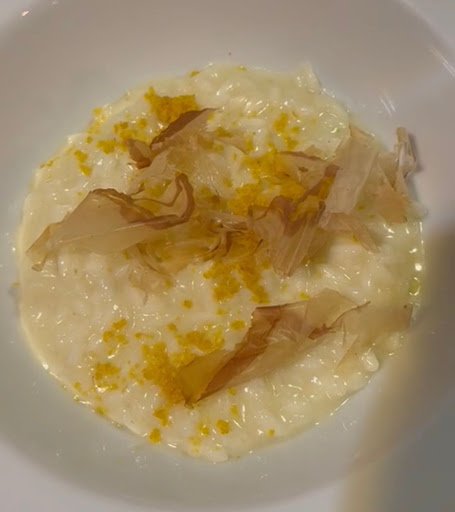Una volta scansionato il QR Code decidiamo di ordinare il loro mix di tapas, un carpaccio di gamberi da fuori menu, un primo ed un secondo. Le tapas sono dei veri e propri mini-assaggi (caldi e freddi) che stuzzicano l’appetito e fanno comprendere a cosa si andrà incontro nelle restanti portate. Abbiamo molto apprezzato che lo Chef sia venuto a tavola a spiegarci i piatti proposti, dandoci spiegazioni su esecuzione e tecnica utilizzata. Su tutto abbiamo apprezzato tantissimo un pesce azzurro marinato in aceto e completato con scalogno uvetta e pinoli. Fantastico nel sapore, nell’abbinamento e nella presentazione che seppur molto minimal ci è piaciuta tanto. Il carpaccio, proposto dalla cameriera molto gentile e disponibile per tutta la cena, ha superato le nostre aspettative egregiamente grazie anche ad abbinamenti più che studiati. Primo piatto, linguine ai crostacei e agrumi, ben amalgamato con sapori per distinguibili. Pasta al dente e cremositá sopraffina. Il secondo è stato più apprezzato del primo con un tocco di dentice su nocciole caramellate, spuma di cavolfiore e tartufo. Bellissimo nella presentazione, un’estasi nel gusto. Ci lasciamo tentare anche dal dolce e ordiniamo una classica fetta di cheesecake di loro produzione. Molto buona, ben presentata. (Nota di merito: pane di loro produzione fantastico).