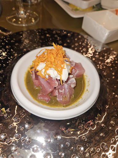 Read moreUn buon Ayce in zona Pradamano. Ambiente molto bello e moderno, le zone più belle dove mangiare a mio parere sono nell'alveare o sull'acqua, ma consiglio di prenotare e chiedere specificatamente se vi possono tenere il posto perché vanno a ruba. Lo staff è molto gentile e sorridente, alcuni camerieri sono attenti nel liberare i tavoli dai piatti sporchi altri invece li lasciano pur vedendoli. La qualità del cibo nel complesso è nella media e posso dire che dipende un pò dalla giornata, infatti la prima volta che sono venuta in questo ristorante la qualità del sashimi era molto buona ma quando ci sono tornata la seconda volta lo era un pò meno. Millefoglie, tacos di tonno e di salmone, bao con pollo, gunkan salmone ikura, tataki di tonno e pad thai buonissimi. Buoni anche i ravioli fritti che non avevo mai provato. Takoyaki non eccezionali ma buoni, come anche i nigiri. Molte varietà di ravioli e anche di uramaki, alcuni mai visti tra cui beef roll, katsuobushi, marinata rucola, oya mazzara con burrata e gamberi rossi, scampi tartufo roll e purple sweet con patate viola dolci. Da provare. Una nota di merito ai piatti special (3 a testa e disponibili a cena) tra cui i salmon roll, sashimi di burrata, cubetti di tonno con burrara e carote e mazzara capesante. Complimenti perché sono davvero buonissimi e li consiglio vivamente. Finalmente degli special che sono davvero special, infatti dò 4 stelle per merito...