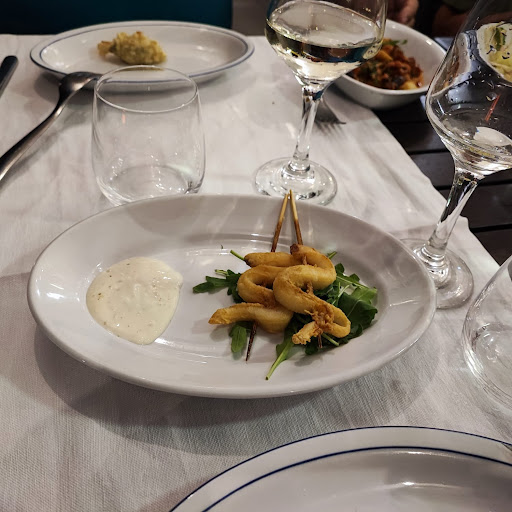 Read moreSiamo stati in questo ristorante prenotando con Groupon, appena arrivati troviamo subito parcheggio di fronte al ristorante...entriamo e ci fanno subito accomodare in una stanza piccola ,appena subito dopo l'ingresso dove c'erano probabilmente tutte le persone che avevano prenotato col Coupon.L'accoglienza e' stata ottima...dopo aver atteso il nostro turno ci portano subito il pane servito in un sacchettino di carta (orribile almeno un cestino che cavolo) e una bottiglia d' acqua, poi appena e' arrivato l'antipasto ci hanno versato mezzo bicchiere di vino (che di vino aveva ben poco) l'antipasto consisteva in alici marinate,frittelle di bianchetti e seppie a insalata (probabilmente congelate) a seguire primo piatto, abbiamo scelto ravioli di cernia il piatto era prevalentemente buono ma a mio parere sapeva poco di pesce ...mah...si sarà persa x strada la cernia...poi ho preso una frittura, che comprendeva calamari a mio parere di scarsa qualità e di nuovo alici, stavolta fritte e dei gamberetti (forse l'unica cosa buona peccato xò che erano solo due) e poi un'altra cosa che non si capiva che caxxxoo era .. trigliette minuscole fritte hanno detto(a me non sono piaciute, era poco piacevole il gusto) poi arriva l'ora del dolce ,molto buono, peccato che era una fettina piccolissima..a seguire caffè.. non male... do a stento la sufficienza, perché leggendo le recensioni mi aspettavo molto di più...sono rimasto un pochino deluso.. sarò molto esigente io.. chissà... rimane un mio parere...Posso affermare ad oggi che Groupon e' solo una presa per...