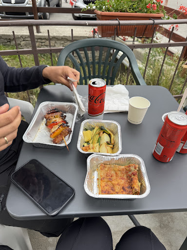 Piacevolissima sorpresa, entrato per curiosità sono rimasto sorpreso dalla varieta di pietanze proposte, dalla trota in carpione allo spezzatino di vitello o di selvaggina passando per il classico pollo o rolatine, salsiccia grigliata sino alle torte. Offrono anche la pizza sia da forno che preparata sul momento. Il vino sfuso offerto in bottiglia a rendere. Ultima nota sono i prezzi che visti gli ultimi aumenti e l'inflazione alle stelle sono alla portata di molte tasche. Se dovessi tornare sicuramente sarà una tappa che...