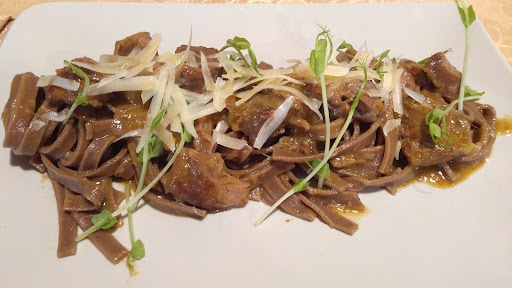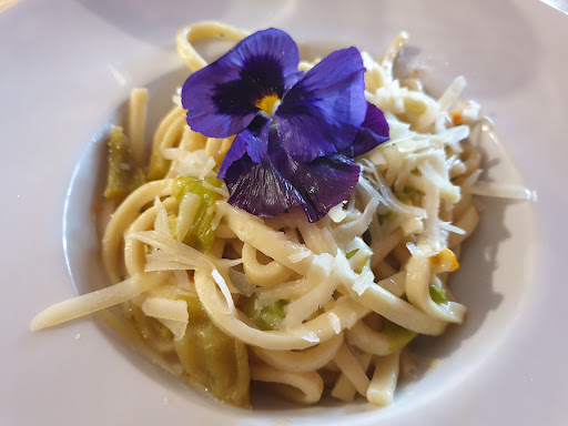 Come fare a recensire “bene” pur rimanendo sintetici? Leggete tutto! È una storia a lieto fine. Vero è che il locale è “alla buona”, ma è pulito e accogliente. Vero è che il servizio è “alla buona”, ma è gentile, e dinamico. Vero è che il menù non è vastissimo, ma ogni cosa che ti servono è un tripudio di profumi e sapori. Come faccio a dirlo? Pur sapendo di altri posti dove mangiare, io le la mia compagna (siamo romani ed eravamo in vacanza) ci siamo stati quattro volte in una settimana, proprio per esplorare tutti i sapori che ci incuriosivano, senza mai ordinare le stesse cose. È un posto dove con gran umiltà ti servono delle cose semplicemente squisite. In un semplice tagliere di salumi e formaggi tipici riesci a percepire la grande selezione e ricercatezza dei prodotti. Nulla è banale o dozzinale. I gusti delle pietanze non sono banali e soprattutto sono bilanciatissimi. Mai un eccesso… Personalmente sulla carne sono molto più diffidente che sul pesce, ed ecco perché non la chiedo mai dove non conosco. Tuttavia, la seconda sera per ragioni nutrizionistiche mi sono ritrovato “costretto” ad ordinare un semplice filetto scondito al sangue. E’ stato un vero colpo di fulmine! Nella vita credo di essermi mangiato una piccola mandria di bovini, eppure una cosà così non l’avevo MAI mangiata. Ho fatto chiamare il proprietario, Andrea. Dopo pochissimi istanti è arrivato al tavolo preoccupatissimo, testa bassa, occhi bassi, grande cortesia e pronto a subire la mia critica. Non avevo da dirgli altro che COMPLIMENTARMI con lui per la scelta qualitativa della carne e per l’ottima cottura. Ho solo ritenuto opportuno dargli un piccolo suggerimento su cosa fare prima della cottura. Una banalità… Niente di importante… Andrea mi ha ascoltato con interesse, manifestando l’umiltà di un VERO COMPETENTE, APPASSIONATO e INNAMORATO del proprio lavoro. Dal menù e dalla proposta culinaria di quella sera e della volta precedente nulla mi aveva fatto capire che in materia di carne Andrea è UN VERO PROFESSIONISTA. Per farla breve: la volta successiva ho mangiato LA PIU’ BUONA Fiorentina della mia vita! Una scottona piemontese MERAVIGLIOSA! Frollata a dovere, cotta e servita in maniera IMPECCABILE! Una cosa l’ho capita: non mancherà molto a che questo posto diventi un punto di riferimento per i carnivori appassionati di “brontosauri”. BRAVO ANDREA! Il posto è distante da me, ma sto già pensando di organizzare un pulmino di amici appassionati come me. E so che non...