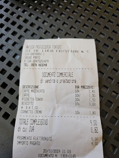 Read moreLa recente ristrutturazione non ha giovato. L'ambiente è migliorato ad essere sinceri. Ma c'è stato un aumento esponenziale dei prezzi: l'altra mattina vado con la mia compagna a fare colazione e...al rientro in macchina con lo scontrino,vedo che un cornetto al pistacchio bicolore (tra l'altro pieno di burro e senza uova) costa 2,50€! Tra l'altro chi ci ha servito, consigliandolo al posto del "normale", non ci ha informato del prezzo (costo quasi il doppio).Ho evitato di rientrare per chiedere spiegazioni...capisco l'aumento della materie prime etc (che hanno comunque subito tutti potendolo constatare servendomi abitualmente anche da altre pasticcerie rinomate) ma non puoi proporre certi prezzi in una via secondaria di viale Galilei a Prato. Peccato perché prima di avere prezzi da Iginio massari in centro a Firenze, ci...
