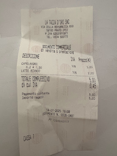 Read moreNon dò quasi mai recensioni a primo impatto, generalmente preferisco frequentare il locale più e più volte prima di poter dare un giudizio completo, ma stavolta mi è bastata solo una visita per decidere che mai più ci avrei rimesso piede. Sono venuta qua con mia madre, verso le 15 di qualche settimana fa, giusto per prendere un caffè. Vengo subito avvisata che i prezzi, anche per un caffè macchiato, non sono modesti e decidiamo di prendere solo un caffè macchiato a testa e un pasticcino piccolo. E devo dire che, seppur i prezzi non sono stati modesti, i pasticcini erano buoni e il caffè non era male. Tuttavia è stato proprio il servizio che mi ha dato un’impressione veramente negativa: appena arrivate, le bariste erano intrattenute in una conversazione con altri clienti e, pur notando la nostra presenza, non ci hanno calcolato continuando tranquillamente le loro chiacchiere frivole. Una volta che finalmente siamo riuscite a ordinare cioè che avevamo scelto, il barista ci ha fatto il caffè ed è qui che ho deciso di dare voto 1: il barista ha sbattuto i caffè sul piattino e, senza dirmi una parola riguardo i due caffè (per esempio: “a lei” o “i due macchiati”), mi ha totalmente ignorato e ha continuato a parlare della partita della JUVENTUS con un cliente, commentando quanto sia stata una partita “spiacevole.” Un po’ di cura del cliente non...