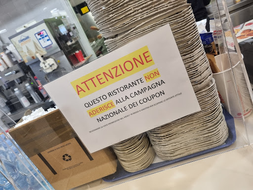 Read moreOttima posizione perché è all'interno di un centro commerciale dove volendo accedi dal parcheggio sotterraneo senza bagnarti e poi dopo cena puoi fare un giro nel centro oppure vederti un film al cinema multisala. Le casse sono automatiche, ma se non sei avvezzo i gestori corrono in aiuto. Il servizio è stato "very fast" nonostante fosse un'ora di punta. I panini sono ottimi, superiori alla famigerata concorrenza, le verdure son fresche e la carne succosa e cotta a puntino, il pane è di buona qualità. Le sedute sono comode e alcuni tavoli hanno pure la USB per la ricarica del cellulare, utilissima dopo una giornata di centro commerciale. Excellent location because it is inside a shopping center where if you want to access from the underground parking without getting wet and then after dinner you can take a walk in the center or see a movie at the multiplex cinema. The cashiers are automatic, but if you're not used to it, the managers run to help. The service was "very fast" despite it being a peak hour. The sandwiches are excellent, superior to the infamous competition, the vegetables are fresh and the meat juicy and cooked to perfection, the bread is of good quality. The seats are comfortable and some tables even have USB for charging the mobile phone, very useful after a day in the...