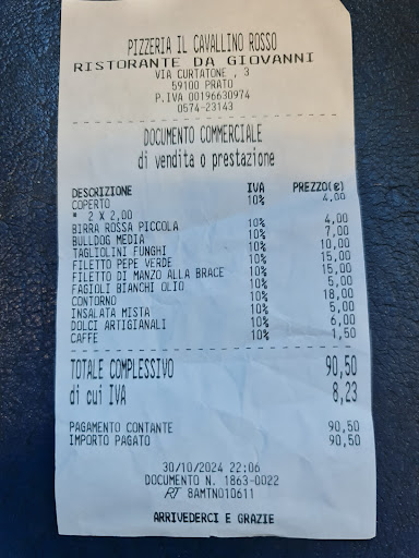 Read moreOttima accoglienza, camerieri cortesi e attenti ai bisogni del cliente, anche per i dettagli più semplici. Il menù comprendeva pietanze di carne, pesce e pizza oltre a specialità del giorno (carciofi freschi nel nostro caso) con varie opzioni fra cui scegliere. Prezzi giusti e porzioni adeguate. In due abbiamo preso: due acqua naturale, un vermentino da 330ml, un antipasto di crostini ai fegatini, una zuppetta di vongole, un sedano alla pratese, uno spaghetto allo scoglio, un carciofo fritto, un cestino di crema chantilly con frutta, un piccolo bongo, due caffè deca e un mobtenegro per una spesa totale di 80 euro. Abbiamo mangiato benissimo e a buon prezzo. Inoltre, l'ampia scelta di piatti del nostro territorio mi invoglia inoltre a portarci amici di altre regioni quando verranno qui in visita! Locale storico di...