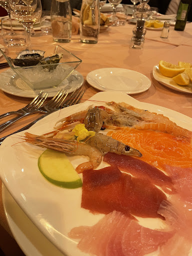 Read moreOttimo pesce, freschissimo e ben preparato; splendido antipasto crudo, assolutamente non banale, abbiamo apprezzato la grande disponibilità dello chef per i primi, eravamo indecisi e ci ha presentato degli assaggi veramente squisiti. Buona scelta di vini, una piccola delusione il dessert: un millefoglie destrutturato che sarebbe stato perfetto se fosse stata utilizzata una pasta brisée o una sfoglia, la sensazione è stata piuttosto di una frolla. Anche l'altro dessert, un tiramisù destrutturato con cioccolato fuso aveva una piccola pecca: il cioccolato era tiepido. L'ambiente rétro è grazioso, a nostro avviso andrebbe un po' rinfrescato, ma forse è il...