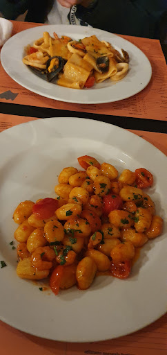Read more3-4 stars I feel is fairly generous, but let's start with the important thing: The food is good. The gnocchi was really tasty, generous amount of seafood with mine, and overall it was quite enjoyable destroying it after a long hike. The service on the other hand is shocking. We were placed into the kids room, barely waited upon, and the bloke running it looked annoyed to see us the whole time. He was rather friendly at the end when we were paying however, and when he got to add the service charged to each meal as well as the 4 euro bottle of water. Ambience was terrible (probably because of the room we were situated in) and lighting was fairly poor. Very noisy restaurant. Still an experience made overall positive by the food - the pizzas looked...