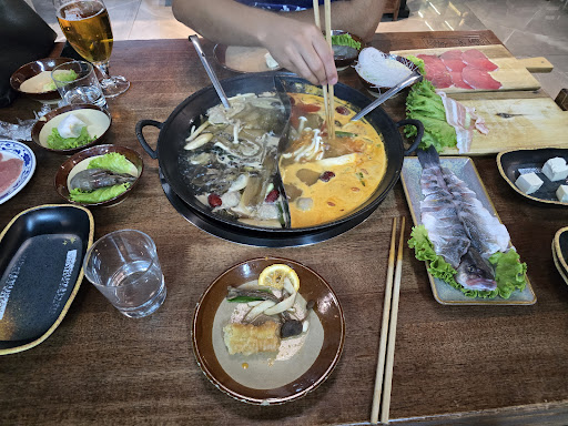Abbiamo mangiato con il mio ragazzo, con la formula all you can eat, l'esperienza è stata molto buona! L'accoglienza in primis ci ha sorpreso, a prato dai cinesi verso gli stranieri non è scontato purtroppo . La ragazza giovane che ci ha accolti era super gentile , cordiale e il ragazzo anche! Il cibo era molto buono e la scelta era molto vasta. Abbiamo preso una pentola con due zuppe , una funghi e una tom yang (che non avevamo capito fosse piccante, ma per fortuna non era insopportabile). Consiglio ovviamente di fare un primo giro prendendo solo poche ciotole che vi ispirano, per non rischiare di sprecare il cibo. Hanno anche sia cose molto particolari e tradizionali , sia mare che terra. Polpette , verdure, diversi tagli di pasta, carni. Ti danno anche in dotazione un copri vestiti per non sporcarti P.s. la recensione la sto lasciando il giorno dopo, per tranquillizzare voi lettori, non abbiamo avuto nessun sintomo particolare, non ci hanno pagati e non siamo in nessun modo...