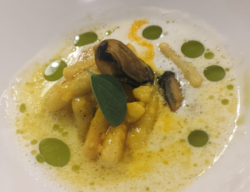 Dopo aver letto alcune recensioni su internet e dopo aver sentito dei buoni commenti da parte di amici, abbiamo deciso di provare questo ristorante nei pressi di Piazza San Marco. Il locale non è enorme, è accogliente, arredato con cura (nella sua semplicità) e con il numero giusto di coperti per avere adeguata privacy e quiete. Si viene accolti da personale attento e preparato, mai invadente. Abbiamo optato per un menù degustazione, lasciando mano libera alla cucina e con il senno di poi posso affermare che è stata la giusta scelta. Il percorso ha spaziato su tutti i fronti: terra, mare, primi, secondi, preparazioni più tradizionali e preparazioni più originali. Ovviamente ci sono stati piatti che mi sono piaciuti di più e altri meno, ma le competenze e le materie prime usate dai cuochi, direi che sono fuori discussione! Le portate che ricorderò nel tempo son si sicuro: Il piatto di ceci nelle 3 "forme", cioè croccanti, in forma di sorbetto e spuma; i passatelli di capasanta, cozze e zafferano; la "frittella" di ceci con petto di anatra, crema di formaggio e verdura; ben fatta anche la lingua. Siamo rimasti tutti piacevolmente colpiti e soddisfatti e se proprio dovessi trovare qualcosa su cui aspettermi una crescita ulteriore in futuro, è nei dessert: dopo una cena del genere, in un locale del genere, mi aspetterei formaggi e dolci all'altezza della situazione, non piatti "ordinari". Erborinato a parte, gli altri formaggi non li ho trovati particolarmente originali e/o con particolari note aromatiche; come il dolce, magari tecnicamente ben fatto, ma con sapori non così caratterizzati. Nulla di drammatico, ma se volessi raggiungere il top, cercherei di migliorare ulteriormente quella parte del menu. E come diceva il mio compagno di tavolo, non c'è motivo per cui ad un ristorante del genere non gli venga riconosciuto l'ambito "Macaron" della famosa guida rossa. Grazie e complimenti a tutto lo staff, sicuramente un posto in cui tornerei volentieri e che mi sento di...