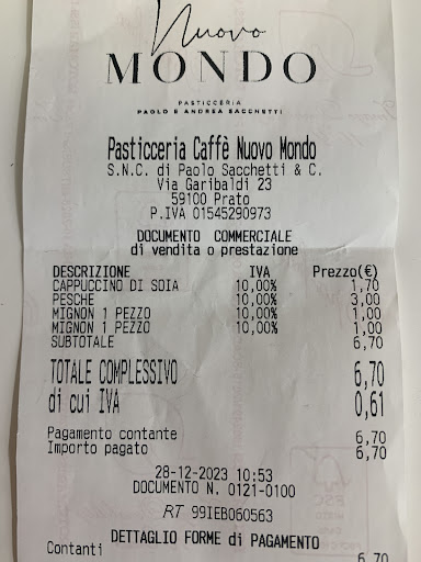 Vivo a Prato per lavoro e questa mattina ho deciso di andare in questa tanto decantata pasticceria pratese, data la fama faccio inizialmente un passo indietro di incertezza visto l'ambiente vecchio e lascivo con vetrine vuote (anche vetrine da esposizione) e l'esposizione dei dolci e salati misera e ordinata come in una stazione di servizio, cmq visto che l'abito non fa il monaco ordino un cannolo alla crema e un mignon alla chantilly (con non poche difficoltà, visto la fonetica di un dialetto che omette 3/4 delle lettere, quindi al solito chiedo di ripetere per 3 volte fino a capire che il mignon alla chantilly era glassato al caramello) e un cappuccino di soia TIEPIDO, mi vengono serviti due piccoli éclair perciò prima di riceverli correggo nuovamente l'ordine facendone togliere uno e risolto il tutto la signora che mi serve mi passa le pseudo leccornie e GRIDA al barman (intento in racconti personali) l'ordine del mio cappuccio di soia tiepido, conoscendo bene le dinamiche mentre vado per sedermi al tavolo dico al barman... "il cappuccio soia TIEPIDO per favore..." e mi siedo... IL CANNOLO: (qui chiamato dito se il cartellino nel vassoio era giusto) pasta sfoglia avanti di cottura quindi amareggiante, crema dolcissima al limite dello stucchevole e non morbida IL MIGNON CHANTILLY: dimensione dell' éclair circa 3,5cm x 1,5cm alto 1cm (al costo di 1euro...) glassato con caramello vetrificato e distribuito su tutta la superficie, pieno per metà di crema il cui sapore, con quello dell'Éclair spariscono sotto questa nuvola di zucchero del caramello che sciogliendosi anestetizza la bocca di dolce IL CAPPUCCINO: che ve lo dico a fare?!.... CALDOOOOO! Mi alzo per pagare valutando le varie delusioni e aspetto il mio turno alla cassa dietro una ragazza, la signora che mi aveva servito con fare e modo da cassa automatica del supermercato non mi guarda nemmeno in faccia cosa che attendevo per riepilogare la mia consumazione e pagare il conto, ma comincia a digitare cose sul display, quindi attendendo la sua attenzione rimango li immobile finché senza guardarmi sento dirle 6 euro e 70, pago il conto senza pensare alla spesa (purtroppo per motivi personali) ed esco, uscito dal locale ripensando per curiosità leggo lo scontrino, più che altro per capire il prezzo del MINI MIGNON "SEMIVUOTO"... e ripetendo la mia consumazione: CAPPUCCINO SOIA CANNOLO CREMA E'CLAIR MIGNON ALLA CHANTILLY mi rendo conto che anche il conto era sbagliato... lascio giudicare a voi GUARDANDO LA FOTO, non per criticare il prezzo o l'errore, ma l'orrore di tutta un'esperienza, dal prodotto alla situazione al servizio. HO LA FORTUNA DI GIRARE MOLTO PER LAVORO E PER PIACERE E DAVVERO LA COSA CHE TROVO PIU' RIDICOLA IN ITALIA E' IL LUOGO COMUNE, ecco se venite a Prato, siate intelligenti... non cadete nel...