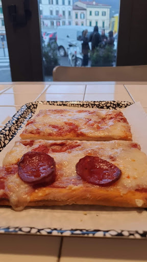 Read morePizzeria a taglio centralissima, pochi tavolini interni e qualcuno esterno in piazza Mercatale. Pizze di tanti tipi, anche ripiene, schiacciatine e bibite. I prezzi sono nella media, la qualità non è eccelsa. Noi oggi abbiamo preso 2 striscioline di covaccino primavera (pomodorini, rucola e un grammo di mozzarella) il cui impasto è risultato non ben lievitato e pesante, lo stesso si dica per la boscaiola con funghi (peccato, perchè i condimenti non erano male). Un po' meglio la ripiena con mozzarella e salsiccia. Poi due Coca Cola, per un totale di 11 euro e sessanta centesimi in 3. Merenda piacevole ma niente di speciale. A Prato...