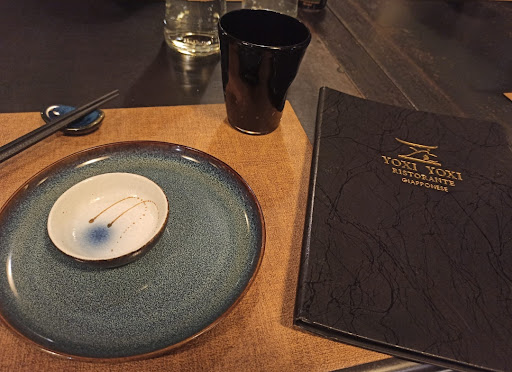 Locale molto bello però il servizio è stato lento e per nulla soddisfacente. Non avevo prenotato perché li di passaggio. Una signorina molto gentile però ci ha trovato posto, dicendoci sottovoce che se non ci stavamo tanto potevamo prendere un posto prenotato... non so per che ora doveva essere prenotato, perché io avrei anche mangiato velocemente per lasciarlo al fortunato dopo di me, se solo ci avessero portato l'ordinazione. Io e mia figlia di 6 anni abbiamo pagato 32 euro per aver ordinato 7 pietanze e mangiate 5 in un'ora e un quarto. Dovendo ripartire, alle 14 e 10 ho chiesto se almeno le ultime due pietanze me le potevano impacchettare (tra l'altro una era semplicemente una porzione di edamame e due gyoza) insomma mi è stato risposto di no e mia figlia praticamente non ha mangiato... spiedini di gamberi talmente pieni di pepe (non specificato nel menu) Menu tra l'altro molto ristretto rispetto a tanti altri posti che l'unica cosa che gli è arrivata più rapida non l'ha nemmeno potuto mangiare perché troppo pepata.... insomma...