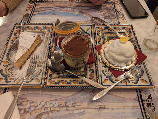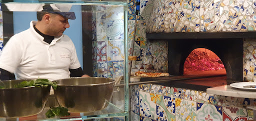 Relaxed cafe with outdoor seating spotlighting artisanal wood-fired pizza & classic desserts.