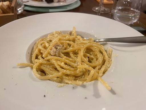-Pici Ragu war gut. -Calamaro hat sehr gut geschmeckt. Jedoch war die Portionsgröße „sehr“ übersichtlich. Um den Teller zu füllen war noch geröstetes Brot zwischen dem Calamaro. Ich hätte mir anstatt Croûtons Calamaro gewünscht… -Sectero Melanzane e Cipolla war ok, geschmacklich gut aber selbst für meine Frau zu wenig… Die Carbonara war geronnen. Ich habe sie zurück gehen lassen. Die Servicekraft sagte mir, dass ihre Carbonara immer so sei und im Herd warm gehalten wird um bekömmlicher für den Gast zu sein !? Ich habe einen neuen Teller bekommen. Geschmacklich waren diese Nudeln völlig anders als der erste Teller. Die Soße war cremig, man hat den Guanciale geschmeckt und es war frischer schwarzer Pfeffer auf den Nudeln…
