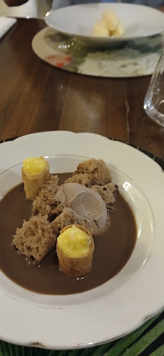 I had the cannoli with hazelnut ice cream and a sort of bread like sponge in a chocolate soup of sorts. I have never tasted a combination like it. My fiancee has passionfruit sorbet. Stunning