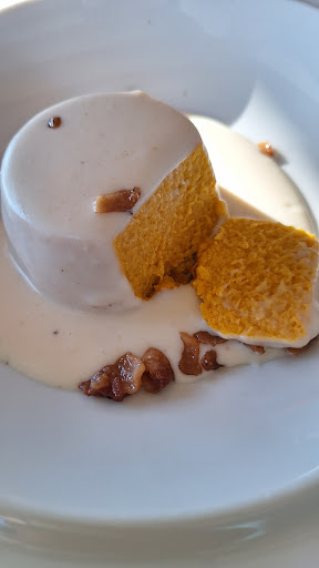 Read moreNon ci siamo proprio. Ordinata una sfoglia di zucchine che era semplicemente una zucchina tagliata a metà con qualcosa che sembrava formaggio spalmabile senza sapore, e qualche mandorla inutile per dare il tocco da "chef". La mia ragazza ha preso una tartara che non sapeva praticamente di nulla. Il mio piatto conteneva delle foglie di zucca fritte che erano fatte bene, ci avessero portato solo quelle, saremmo stati contenti. Il secondo è stato imbarazzante. La mia ragazza ha ordinato cube roll; è arrivata una bistecca a forma di bistecca, cotta come una bistecca, che aveva più tessuto connettivo che carne. Alla richiesta di spiegazioni ci è stato detto che quello era il loro cube roll... Guarnizione di patate al forno riscaldate e salatissime. Io ho preso una picana a cui il cuoco ha fatto fare il bagno nell' insaporitore, a giudicare da quanto era salata. Come dolce abbiamo preso due cheesecake che non sapevano assolutamente di nulla. La mia ragazza non mi ha permesso di esprimermi direttamente quella sera, ma lo faccio ora. Nulla da dire sul servizio, personale gentilissimo ed educato, bel posto suggestivo, ma le pietanze erano assolutamente indecenti. Pagato il tutto 120...