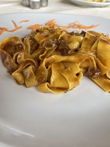 Read moreWat een pareltje van een restaurant! Wij kwamen hier bij toeval terecht. Op het buitenterras heb je een mooi uitzicht over de bergen. Binnen is er geen uitzicht, maar het is er knus. Wij waren hier in juni 2022 voor de lunch en wij waren de enige klanten! Dat was vreemd, want het eten is fantastisch. De bediening was super vriendelijk. We voelden ons als god in Italië, omdat wij daar met z’n vieren op die berg zaten met bediening en een kok voor ons alleen. Maar we wensen het restaurant natuurlijk veel meer klandizie toe, dus vandaar dat ik deze recente schrijf, opdat vele mensen overgehaald worden om ook hier te komen genieten van de heerlijke gerechten. De prijzen zijn meer dan schappelijk, dus leef je uit met de menukaart. De vino della casa was goed en goedkoop: een halve liter voor vijf euro. We vonden de gerechten zo interessant dat we veel verschillende gerechtjes hebben gekozen en samen hebben gedeeld: wij namen de Antipasti; dit bleek een gigantisch bord met heerlijke vleeswaren uit de regio en een bordje met gedroogde tomaten, gekonfijte uien en fungi porcini. Verder namen we de Tomino su Vellutata di Porcini, de pasta sloegen we over en kozen verder voor: Trippa alla Parmigiana, Cotechino con Mexicanos, Tagliata di Cervo ai Fungi porcini, en we namen een aantal contorni: Anelli di Cipolle, Verdure in tempura, Peperonata, Carciofino alla Romana. Zie de foto’s. Alles was heerlijk. Als je in de buurt bent, laat je dan verrassen in dit sympathieke...