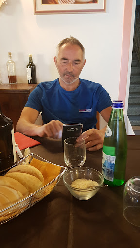Ci siamo fermati per un pranzo di lavoro. Ha parcheggio per i camion anche al di là della strada. Classica trattoria gestita in famiglia da genitori e figlio, la mamma prende gli ordini come una volta con carta e penna come piace a noi...( Mi raccomando non modernizzatevi), i piatti arrivano ben serviti e caldi tutto fatto in casa. Il figlio simpaticissimo e perfino mi ha trattato molto bene alla resa dei conti finale ( gran Signore) !!! Da notare la mascotte, un cagnolino buono che mai che sembra un...