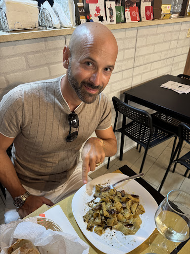 Read moreLocale piccolo con pochi tavoli ma carino, il vero problema è il titolare. Ci siamo convinti ad andare in questo locale per le foto pubblicate del tagliere di prosciutto, salumi e formaggi quindi appena arrivati abbiamo chiesto di quelli, la sua prima risposta è stato un secco no, poi quando ha capito che ce ne saremmo andati ha cambiato risposta e che ce li avrebbe portati, dopo un po si presenta con un piatto (e non un tagliere) con 4 fette di prosciutto tagliato a mano, tra l'altro buonissimo ma tagliato proprio male alcune fette alte 1 cm che ha reso difficile gustarle, 4 fette di ricotta salata e basta... Abbiamo poi preso cicoria ripassata e zucca da lui consigliata e ci sono arrivati 2 piattini con le verdure palesemente riscaldate al microonde, e un piatto di amatriciana che ci ha concesso di avere solo dopo un'altra discussione, ma almeno era buono, soprattutto le fettuccine fatte a mano, ottime! L'ultimo problema si è presentato al conto perché dopo avergli fatto notare che far pagare quei piatti di prosciutto e formaggio 12 euro come se fosse stato il tagliere descritto in foto era veramente troppo, lui candidamente ha risposto che "si sa che le foto lasciano il tempo che trovano!" e che poi cosa potevamo pretendere visto che avevamo prenotato tramite l'applicazione.... Abbiamo pagato e ce ne siamo andati. Un vero peccato posizione ottima materia prima anche ma la gestione totalmente...