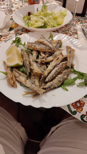 Read moreAvoid, as others here have advised. I’m giving two stars because the food was actually pretty good when we got it, but everything else was bad. The house wine was dreadful, the service indifferent, the atmosphere deflating. (We only sat inside because of the weather.) Someone here commented that there were no prices on the menu; they may be right (I don’t remember) because we were shocked by the bill. We wanted a quick snack (split three ways) and drinks before the ferry, but we received mountains of fried anchovies, another pile of calamari, and another heap of fries…and a bill for 60 euros. This is neither cheap nor cheerful...