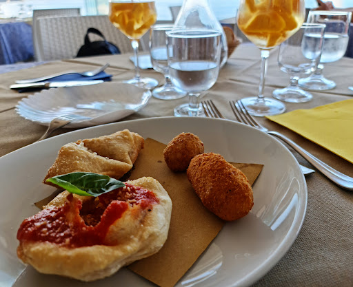 Read moreThe restaurant is located in a dream place: above a beautiful beach, with a wide view, and if you take dinner you have every chance to catch a splendid sunset. The waiters are very kind and attentive, the bathroom is decent. Small details can be taken into collateral discussions, But a restaurant is about food, first of all. And regarding the quality of the dishes we are talking about superlative. We started with an easy starter, thought together with the lady who served us - this is a big plus that we give the restaurant: flexibility, freedom to deviate from the "letter" of the written menu. Then we took one of the specialties of the house: seafood and pesto paste and one of the culinary specialties of the Procida insula: rabbit paste. We matched a white wine with peach pieces and natural water. At the dessert - a chocolate cake, the specialty of the house. No more need for a...