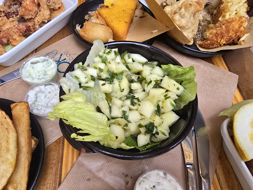 Read moreThis was one of the most delicious meals ever! :) The first thing I liked is the fact that they understand and speak english fluently so ordering is not a problem. The waiter was very very kind. We ordered fried calamari, french fries (I kindly asked them do add lemon zest on top and they did-it was delicious!đ) & greek salad (that was even better than in some places in Greeceđ All three dishes were perfect and so darn delicious. The prices are not so low as you would expect of this kind of place (wooden forks) but It is so worth it. Make sure you wait for the table and eath there, not take away because the table area is cute and...