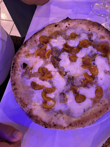 La pizza non segue fedelmente lo stile napoletano con il classico cornicione alto e morbido: è più sottile, spianata e leggermente più asciutta, ma comunque molto gustosa. Consigliatissime le pizze semplici o quelle con le acciughe, dove si percepisce meglio la qualità degli ingredienti.