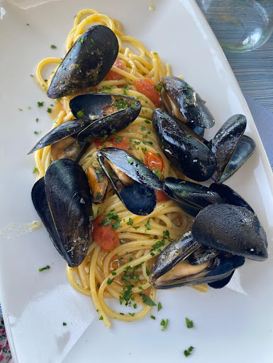 Un pranzo deludente. La pasta con le cozze presentata bene, purtroppo nel sapore non rispecchiava l'estetica: molto al dente (oserei dire praticamente cruda) sughetto che sembrava essere già pronto e la qualità delle cozze davvero scarsa. Come secondo alici fritte con patatine...essendo in un luogo di mare ci aspettavamo molta più qualità sul pesce che purtroppo non abbiamo ritrovato e infatti non abbiamo mangiato affatto. Per concludere, cantalupo buono dolce ma molto freddo (appena uscito dal frigo) e sorbetto al limone che forse è stata la cosa peggiore: amaro e assolutamente non di qualità!