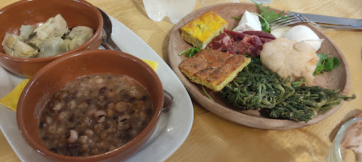 Prima volta alla locanda S. Michele. Prenotato la mattina stessa. Ci hanno fatto accomodare 13.30 e servito subito acqua pane e vino rosso della casa. Abbiamo ordinato due primi : polenta al sugo di spuntature e salsiccia molto buona, da bis!! e fettuccine al ragù di cinghiale, ottime. Per secondo abbiamo scelto una trippa al sugo buonissima e uno spezzatino di bufalina altrettanto tenera e saporita( forse un pò di olio di troppo) con due contorni di carciofi. Bel locale che mi ero proposta di visitare da tempo e ne è valsa la pena . Gestione familiare, figlie, mamme, cognati tutti al lavoro, piatti locali ben cucinati. Per dolce abbiamo scelto una crostata ai frutti di bosco che non abbiamo apprezzato molto per via dei frutti di bosco, troppo dolce, quasi marmellata, e dei biscotti da vino. Complessivamente tutto bene, prezzo adeguato. Personale gentilissimo e alla mano. Da migliorare forse, volendo fare i pignoli, l'attenzione alla sala intesa come presenza fisica di una persona fissa almeno al bar che rimane sguarnito per molto tempo. Di sicuro ci...