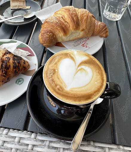 Tipico bar con un po’ di tutto. Avevamo voglia specifica di un bel cornetto alla Nutella e avevano proprio quello. Tanti cornetti soffici pronti da riempire con quello che vuoi ma a me interessava la Nutella. Hanno anche integrale, al cioccolato, miele, marmellata. Siamo arrivati un po’ tardi in mattinata quindi almeno avevano l’opzione di riempire i vuoti.