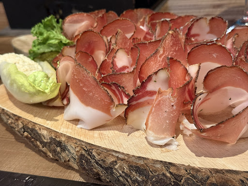 Read moreAbbiamo deciso di cenare in questo ristorante perché aveva buone recensioni e la cucina era ancora aperta, non come altri ristoranti che chiudevano la cucina alle 20.00. Quando si entra si vede subito all’ingresso la parte del bar con gli sgabelli davanti al bancone. Dopo andando avanti ci si ritrova nella sala interna, la quale è molto ampia, pulita e ben illuminata. Noi abbiamo preso come antipasto il tagliere di speck con rafano e burro, molto buono. A seguire invece abbiamo preso due primi, le pappardelle con ragù di selvaggina e gli gnocchi di patate con formaggio, cavolo cappuccio e semi di papavero. I primi avevano un impiattamento molto bello ed erano anche buoni, solo leggermente troppo salati, gli ultimi bocconi dovevi alternare la pasta all’acqua. Per accompagnare il cibo abbiamo preso un acqua e mezzo Cabernet, il quale molto buono. L’acqua viene 6 euro a litro invece il vino è di 8 euro per mezzo litro. Sfortunatamente non siamo riusciti a prendere il dolce poiché eravamo troppo pieni. Il servizio può essere migliorato. Si sono dimenticati di portarci il menù delle bevande e dopo quando sono arrivati i primi volevamo chiedere del parmigiano, però non c’era nessuno in sala . In seguito nonostante i nostri tentativi di richiamare l’attenzione dei camerieri, non ci siamo riusciti. Per il resto sono abbastanza competenti e fanno quello che devono fare. Essendo sera non siamo riusciti ad ammirare la vista esterna, che dalle foto sembra molto bella.
