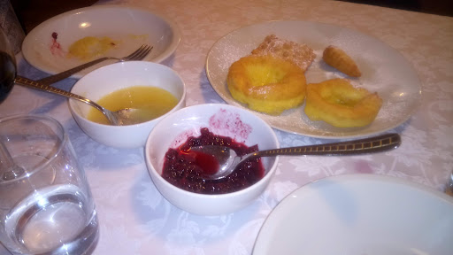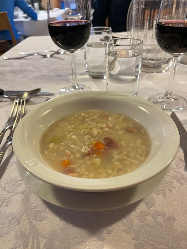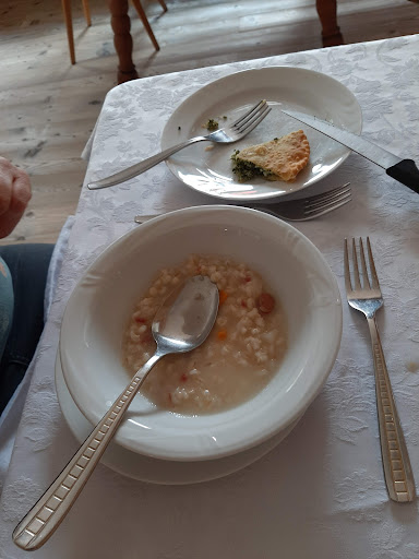 Il pranzo in questa osteria è stata un'esperienza veramente piacevole e particolare proprio per la formula a prezzo fisso (28euro a testa compreso acqua di fonte e un calice di vino rosso) che accompagna l'ospite in una degustazione panoramica e misurata nelle quantità (in modo da arrivare ai dolci ancora vivi seppure mediamente molto provati) dei piatti tipici ladini: zuppa d'orzo accompagnata da una piccola tortina di spinaci fritta, ravioli al burro con due ripieni diversi (patate e formaggio e spinaci e ricotta) con semi di papavero o parmigiano come complemento, mezzo stinco di maiale con patate al forno, tre diversi dolci fritti e una fetta di strudel con panna montata appena fatta. L'aspetto interessante dei dolci è la modica quantità di zucchero, nulla di aggiunto alla frutta o al latte, in un bilanciamento decisamente insolito per noi nativi dell'alimentazione industriale, schiavi del cibo edulcorato e idrogenato....