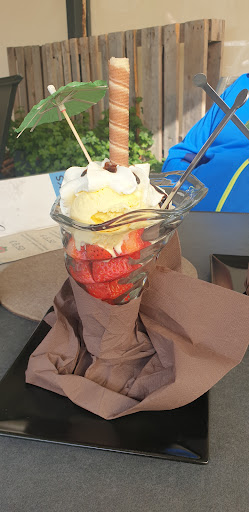 The lady at the counter wasn't that friendly. She didn't ask if we needed something. She spoke most of the time with someone, although I was there waiting. She didn't change our ashtray. I ordered a coffee, a tea and an ice cream. All those were placed on a small tray (not big enough for all), and I had to carry that plate...
