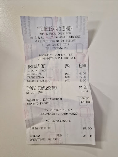 Read moreThis was one of the only places we found open on Mondays and midday, when most everything is closed. The hot dishes are pre-made and reheated but we're surprisingly good. We had risotto with porcini mushrooms and basic cheese ravioli with tomato sauce and both were tasty. We also took pretzels, which were delicious the next morning. This is a one-man shop - he cooks, makes coffee, packages, serves, and is the cashier, all while maintaining a pleasant demeanor. Since he's open when others aren't it can get quite busy, so please be patient. We didn't try the strudel but we're impressed by the selection of both savory and...