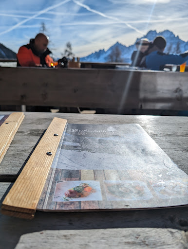 La terrazza soleggiata è il vero punto di forza: mangiare o bere baciati dal sole invernale è un’esperienza che vale il prezzo della sosta. La cucina è buona, le porzioni sorprendentemente abbondanti, e sì, i prezzi sono leggermente sopra la media della valle, ma almeno il vin brulé viene servito in tazza come si deve.