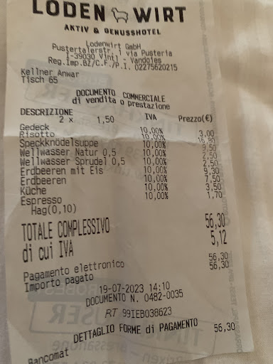 Pessimo, sconsigliatissimo! Ci avevano Consigliato questo posto per mangiare della buona carne ed invece l’esperienza è stata pessima... seduti al tavolo ci hanno portato i menu dove non c’era traccia di carni particolari, abbiamo quindi chiesto alla cameriera la quale ci ha proposto come fuori menù una grossa bistecca per due persone di carne locale.... tempo di attesa lunghissimo per un taglio tipo fiorentina al sangue, tutto sommato discreta, SORPRESA al momento del conto ... la carne è costata €109 al kg... e’ vergognoso che non ci sia stato detto quando ci è stato proposto come piatto... comunque una cifra del genere è un furto per la tipologia di carne offerta. Oltre ovviamente alla disonestà segnalo anche un servizio pessimo con una cameriera che a malapena parlava l’italiano e che tra l’altro Utilizzava parolacce... 👎🏻👎🏻👎🏻👎🏻 RISPOSTA AL Sig. Profanter titolare e proprietario del ristorante Lodenwirt. Egregio Sig. Thomas, la ringrazio della risposta in relazione alla quale mi preme di sottolineare quanto di seguito, sicuramente la carenza è da attribuire al suo staff ma a questo punto mi preme che lei ne sia a conoscenza così da evitare situazioni spiacevoli con altri clienti: