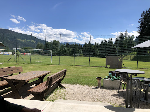 Bei Sonnenschein kann man es sich im Außenbereich gemütlich machen! Für Familien mit Kindern sei angemerkt, dass sich Rutsche und Schaukeln in der Nähe befinden und so auch keine Langeweile bei den Kleinsten aufkommt.