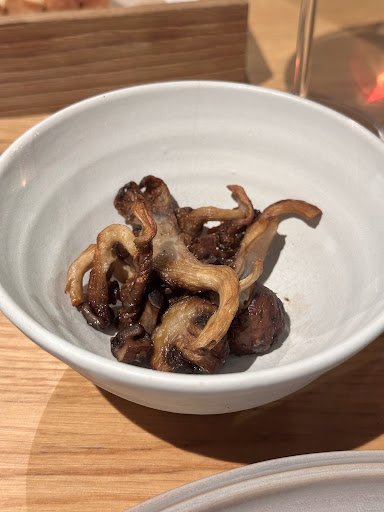 we came here because of the nice reviews and ordered the five course menu. the first was a beef tartare, very good. the second a ravioli dumpling on broth, very tasty but average. the third a risotto, with soft rice…we tried three times to tell them that it was not “al dente” but no one cared nor tried to understand . when the second plate arrived we realised that the 5th could be sweet, and as my husband does not eat sweets we informed them. when the fourth plate arrived they asked if i wanted sweet and told us they could not bring my husband the fifth plate not sweet. so we cancelled the fifth plate for both of us as it was already turning to a bad experience. when the check arrived…surprise! they charged us more than the 4 plates menu costed because we didn’t eat any dessert, but they only told us they would not serve dessert after the fourth plate. lastly, very strange choice of architecture that eventually reflected in a not cozy atmosphere…overall not very welcoming and lack on...
