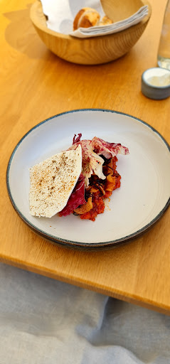Read moreIl locale si presenta accogliente e curato nei dettagli, dalla Mice en Place presente a tavola all’accoglienza da parte dei dipendenti. Menù alla carta essenziale e non dispersivo con possibilità di percorso degustazione dalle 4 alle 8 portate e degustazione vino abbinata. Viene servito pane a base lievito madre con burro montato aromatizzato allo yogurt greco a tutti i commensali, come piccolo starter durante l’attesa dei piatti, ben presentato e di ottimo gusto. Presenti in figura alcuni dei piatti per cui abbiamo optato dal menù alla carta; finocchi glassati provenienti da un piccolo produttore locale ben preparati e bilanciati, davvero ottimi. Piccola critica al fondo di cottura accompagnato alle Short Ribs che si presenta slegato sul piatto. “Uovo ruspante” (nome a mio avviso fuori luogo e poco formale) si presenta molto bene e con un gusto deciso davvero interessante. Piccola critica questa volta sul servizio dove ,non essendoci stato portato un cucchiaio, abbiamo trovato difficoltà a degustare la salsa presente sul fondo del piatto. Abbiamo dovuto richiederlo in un secondo momento. Tagliolini all’uovo , ragù di cervo e salsa ai frutti rossi (non presenti in figura) si presentavano con un aroma di maggiorana troppo invadente e una salsa che non spiccava in gusto, rendendo il tutto abbastanza “piatto” in termini di sapore e bilanciamento. Prezzi consoni alla tipologia di servizio offerto e alla località. Nel complesso un locale che consiglio assolutamente, con una proposta gastronomica interessante, ricercata e originale. Materie prime di qualità, ben lavorate che rispecchiano quelli che sono temi molto attuali, quali sostenibilità e stagionalità degli...