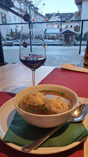 Siamo arrivati intorno alle 13:50, il responsabile della sala dopo qualche minuto d'attesa ci ha subito assegnato un tavolo per due. Si constatava la bellezza e l'accoglienza piacevole del locale e, soprattutto, nel vedere che una parte della cucina era a vista dove operava lo chef con la sua brigata, inoltre molto bella la comunicazione con il negozio di macelleria come punto vendita dei loro prodotti. Dal menù sono stato attratto dei canederli allo speck, i quali erano solo in brodo, ho chiesto se si potevano avere al burro fuso e salvia ma, data la forte affluenza di gente, mi è stato detto che non era possibile soddisfare questa mia richiesta, così li ho ordinati in brodo e poi a seguire, per soddisfare una nostra voglia, la wienerschnitzel con patatine fritte e marmellata di mirtilli ossia una variante della cotoletta alla milanese dove quest'ultima viene cotta nel burro chiarificato anziché nello strutto. Pensavo, come al solito, arrivassero tre di canederli nel piatto ma erano solo due però di buona fattura. Molto gradita nel brodo l'erba cipollina tagliata finemente come previsto, però al brodo mancava quel gusto tipico di carne dando così l'impressione che fosse stato fatto con il dado. Alle 14:30 è cambiato il personale in cucina ed abbiamo atteso trenta minuti per l'arrivo del secondo piatto quando nel frattempo il locale si era abbastanza svuotato. La wienerschnitzel, come da foto, si presentava con due fette di carne squadrata, anziché di forma irregolare, la superficie liscia e senza presentare la classica rugosità, dava l'impressione di un "Cordone bleu" surgelato mentre le patatine fritte erano sicuramente surgelate ma troppo fine rispetto ad altre in commercio con dimensioni maggiori. Direi che le nostre aspettative sono state disattese forse a causa all'orario d'arrivo al ristorante. Probabilmente gli altri piatti proposti, arrivando presto al ristorante, saranno certamente di qualità, ed è per questo che pensiamo di ritornarci per una nuova...
