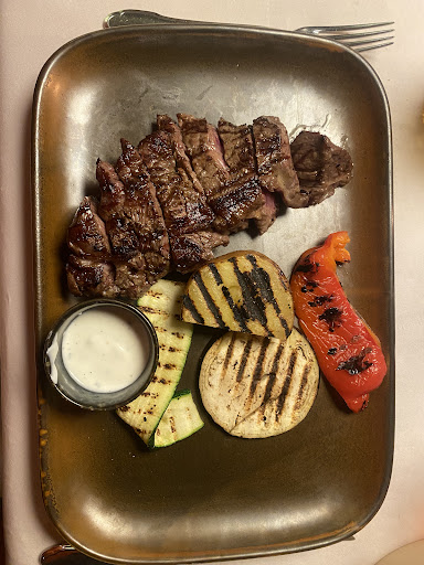 The food exceeded our expectations. The meat was perfectly cooked with just the right fat-to-meat balance you'd hope for from a quality steakhouse. The grilled vegetables were delicious, and the polenta was excellent too!