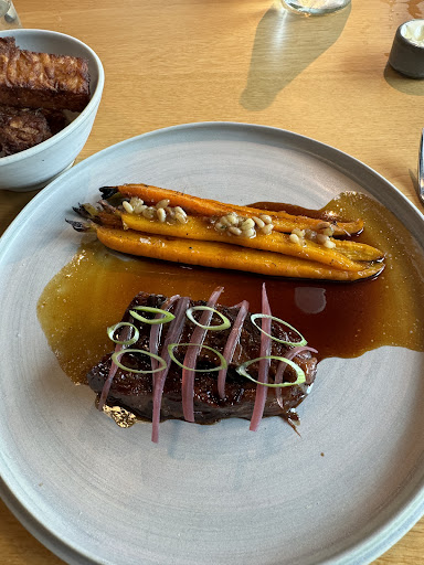 Read moreIl locale si presenta accogliente e curato nei dettagli, dalla Mice en Place presente a tavola all’accoglienza da parte dei dipendenti. Menù alla carta essenziale e non dispersivo con possibilità di percorso degustazione dalle 4 alle 8 portate e degustazione vino abbinata. Viene servito pane a base lievito madre con burro montato aromatizzato allo yogurt greco a tutti i commensali, come piccolo starter durante l’attesa dei piatti, ben presentato e di ottimo gusto. Presenti in figura alcuni dei piatti per cui abbiamo optato dal menù alla carta; finocchi glassati provenienti da un piccolo produttore locale ben preparati e bilanciati, davvero ottimi. Piccola critica al fondo di cottura accompagnato alle Short Ribs che si presenta slegato sul piatto. “Uovo ruspante” (nome a mio avviso fuori luogo e poco formale) si presenta molto bene e con un gusto deciso davvero interessante. Piccola critica questa volta sul servizio dove ,non essendoci stato portato un cucchiaio, abbiamo trovato difficoltà a degustare la salsa presente sul fondo del piatto. Abbiamo dovuto richiederlo in un secondo momento. Tagliolini all’uovo , ragù di cervo e salsa ai frutti rossi (non presenti in figura) si presentavano con un aroma di maggiorana troppo invadente e una salsa che non spiccava in gusto, rendendo il tutto abbastanza “piatto” in termini di sapore e bilanciamento. Prezzi consoni alla tipologia di servizio offerto e alla località. Nel complesso un locale che consiglio assolutamente, con una proposta gastronomica interessante, ricercata e originale. Materie prime di qualità, ben lavorate che rispecchiano quelli che sono temi molto attuali, quali sostenibilità e stagionalità degli...