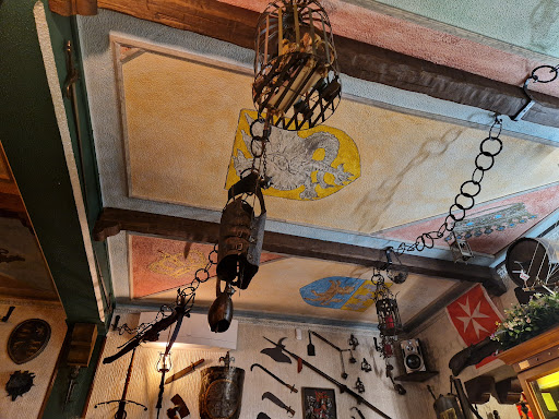 Le pareti sono tutte addobbate con armi e drappeggi dell'epoca. Non ho chiesto se sono pezzi storici, comunque la loro funzione di arredamento è servita.. persino la porta del bagno è disegnata a cella di un antico castello.
