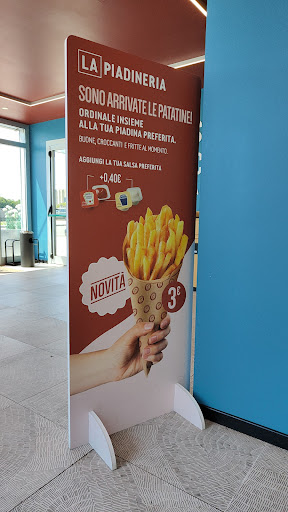 Oggi 20/11 ore 18.Parcheggio e dalle vetrate vedo una dipendente bionda affaccendata con i secchi evidentemente usati per lavare per terra. La mora seduta ad un tavolo che gioca con il cellulare. La bionda mi saluta la mora va in cucina ed inizia ad usare l’affettatrice. Scelgo cosa ordinare e aspetto alla cassa di poter fare l’ordine. Aspetto….aspetto….aspetto e aspetto, temo di non essere stato visto per cui suono il campanellino per avvisare che ero pronto ad ordinare, la mora che era a due metri da me si gira imbruttita ed esclama “ UN ATTIMO STO ARRIVANDO 😡😡” . Evidentemente infastidita ci tiene a precisare che in cucina è da sola . Peccato solo che 1: quando sono arrivato stava giocando beatamente al cellulare e 2: sono l’unico cliente all’ interno del locale !!!! Se io fossi il darsi lavoro di questa ragazzina gli darei sicuramente il ben servito. Ps: la piadina non sarebbe neanche male ma la prossima volta che sarò di passaggio mi fermerò al Mc Donald li...