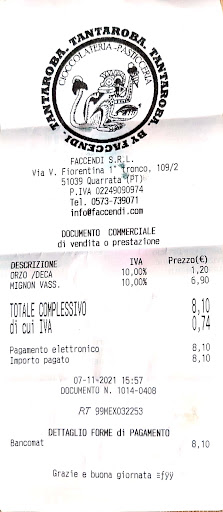 Read moreBuonasera al titolare del Tantaroba by Faccendi. Una stella su cinque non riguarda la pasticceria in tutte le sue forme che é molto buona. Riguarda una, diciamo, pecca di stile (?) accaduta a me oggi in concomitanza ad un'altra coppia per il medesimo motivo. Sono un degustatore di pasticceria in genere e di Mignon in particolare. Oggi pomeriggio davanti al banco ordino delle mignon e ne chiedo il costo: 80 centesimi cadauna. Ne ordino 7 e un caffè decaffeinato. Chiedo il conto e rimango sorpreso dell'importo delle mignon. 6,90 € invece di 5,60 €(80 centesimi x 7). Chiedo spiegazioni e vengo informato che dopo un certo numero (6) le mignon vengono vendute a peso. Quindi se avessi preso 6 mignon avrei speso 4,80 €. La settima mignon in pratica invece di costarmi 80 centesimi mi é costata 2,10 centesimi. Non voglio fare una polemica sull' importo , i soldi vanno e vengono ma, generalmente prendendo la pasticceria a peso dovrei spendere meno. Considerando anche che le mignon andrebbero SEMPRE vendute a peso. Considerando che un'altra coppia stava sottolineando la solita cosa credo che il titolare mi debba una spiegazione. Un unico desiderio, la prossima volta che tornerò a gustarmi le mignon, visto che non sono visibili importi per unità,desidero espressamente a prescindere dalla quantità che l'importo mi venga espresso a peso. Non a unità. Il peso della crisi non lo dovete scaricato sui vostri clienti....
