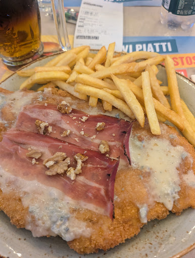 Read moreMi tengo sul giudizio nel mezzo perché non voglio assolutamente penalizzare tutto il ristorante per dei più o meno piccoli dettagli. Ci accomodiamo subito, e nel giro di un minuto scarso dalla consegna del menù, piomba il cameriere per le ordinazioni, che in tutta onestà neanche ci guarda, parla e basta, posso capire la stanchezza, la giornata storta, ma gli si leggeva letteralmente in faccia che era tutto fuorché contento di essere lì. Troppo sbrigativo e se devo dire, un po' scortese. E, da cliente, questa cosa mi ha messo a disagio. Gli chiediamo gentilmente di ripassare, visto che ci eravamo appena seduti e neanche avevamo visto il menù. Un altro minuto scarso, letteralmente il tempo di leggere "antipasti", ed eccolo, di nuovo lì. E due, stessa scena. Gli rispondo forse anche un po' scocciata, capisco la fretta nel dover prendere gli ordini, ma anche meno. Alla terza ero decisamente molto scocciata, tanto quanto lui poco felice di lavorare. Portano i piatti, una cotoletta da un lato, che sembrava molto invitante, a differenza del mio ordine: per me un hamburger + insalata + patate lesse, che puntualmente vengono posti all'altro commensale come se io manco ci fossi, e che solo a guardarli, per quantità misera e impiattamento, mi veniva voglia di mandare a quel paese l'alimentazione sana e mangiarmi piuttosto il tavolo. Hamburger grasso e unto, buttato lì al centro del piatto su una mezza foglia di insalata riccia, insalata mista che se erano 100 g era troppo, e patate lesse sbriciolate, non una intera. Posso capire che come ordine non era il massimo, ma avrò anche io il diritto a un servizio "presentabile" tanto quanto i piatti più appetitosi? Mangiare ho mangiato, però non so, ci ritornerei? Oltre mister non sorriso, il resto del personale era...