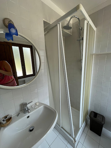 La chambre dite triple réservée sur Booking n’est pas celle pour laquelle nous avons reçu les clés. Néanmoins, nous avons été logés dans la « suite » comme l’appellent les propriétaires. Elle est, en effet, très grande et comporte une mezzanine avec 2 lits supplémentaires soit 4 couchages. Il est nécessaire d’être attentif à plusieurs choses : il n’y a pas de pré-paiement comme annoncé, certains services prévus initialement ne sont pas proposés ou font l’objet de certaines surprises que j’ai signalées à Booking.com pendant le séjour après signalement à l’amiable localement : il n’y a pas de TV, de chaînes satellites, de radio, de vue sur jardin (vue sur toits en réalité), de sèche-cheveux. Il y a une moustiquaire et une paire de volets pour une fenêtre sur les 3. L’hôtel est très bruyant puisque situé en bordure de route et les grasses matinées sont impossibles car le personnel, bien que serviable, assure bruyamment l’entretien des chambres dès 9h (échanges verbaux, rires, toc-toc à la porte pour rappeler qu’il y a le breakfast, chariot sur le carrelage et portes qui claquent), les discussions des voisins sont presque totalement audibles jusqu’à leur coucher parfois tardif et les lits tapent contre les murs à chaque mouvement. Pour l’astuce, j’ai dû accrocher une couverture à la fenêtre sans volet pour assurer un minimum de pénombre dès 7h du matin. De plus, il ne faut pas être corpulent car la douche risque d’être im-pra-ti-quable. C’est un bac à douche carré de +/- 60cm entouré d’une cabine en plastique. Comme il n’y a rien pour poser le savon, on se retrouve accroupi, avec la porte coulissante déboîtée dans les mains. Il n’y a pas non plus de douchette à main, il y a uniquement un pommeau de tête fixé approximativement au mur avec de mauvaises chevilles sûrement (car il pendait). Enfin, préparez-vous à être délocalisé dans une autre chambre pendant votre séjour, car comme ça nous est arrivé, une sous-réservation de la « suite » a été faite et le propriétaire nous a clairement annoncé le matin même à notre porte qu’elle devait être nettoyée, libérée et que nous devions dormir dans la chambre d’à côté pour notre dernière nuit. Cette mésaventure nous a finalement valu une réduction. Pourtant, des réparations/ajustements sur l’instant auraient été préférables mais malheureusement les clients suivants ont reçu la chambre laissée en l’état.