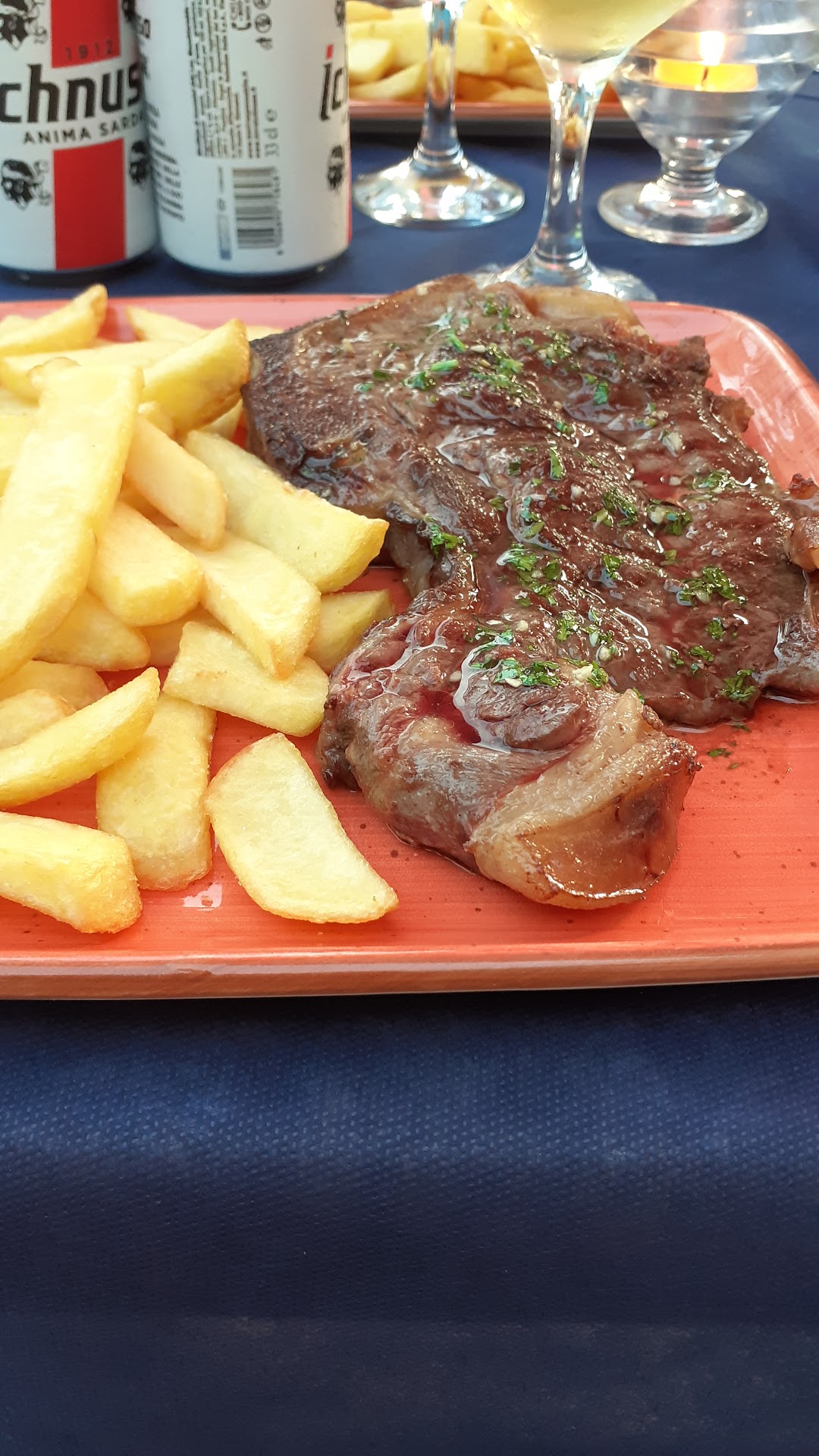 Ottimo locale all'esterno e personale cordiale, sempre pronto a rispondere alle tue richieste. Ho preso con mia moglie il menù carne con bistecca di cavallo e patatine. La bistecca era di ottima fattura e le patatine erano sublimi, mamma mia che buone. Poi abbiamo mangiato il dolce, lo zuccotto con una crema dal gusto deciso ma delicato allo stesso tempo. Ho avuto la fortuna di mangiare la focaccia anziché il pane, salata al punto giusto e di un gusto pieno, fatto con semola. Il mio giudizio è assolutamente più che positivo, da 5 stelle. Tornerò senza indugio perché piano piano voglio provare tutti i piatti. Complimenti ad Antonello il titolare e a tutto lo staff. Stupidamente ho scordato di fare foto, la prossima...